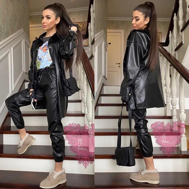 Жіночий костюм з еко шкіри джогери і сорочка,РОЗМІР ТІЛЬКИ 44