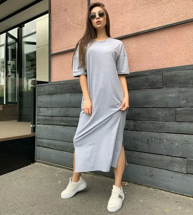 Сіра сукня-футболка ,РОЗМІР ТІЛЬКИ 46
